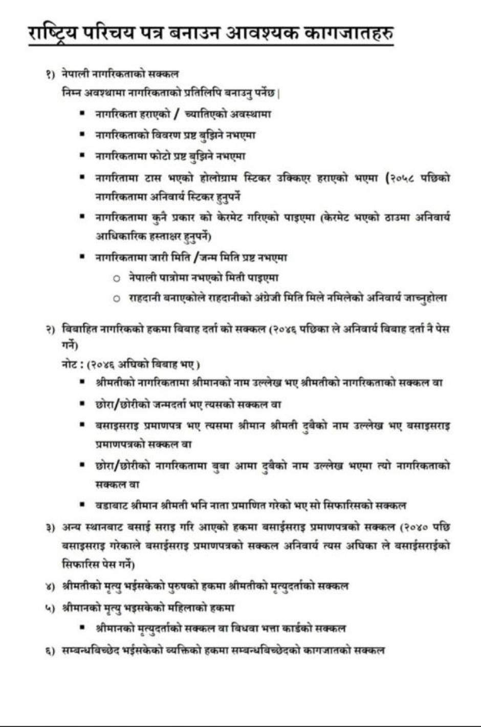 राष्ट्रिय परिचयपत्र वनाउन चाहिने आवश्यक कागजातहरु