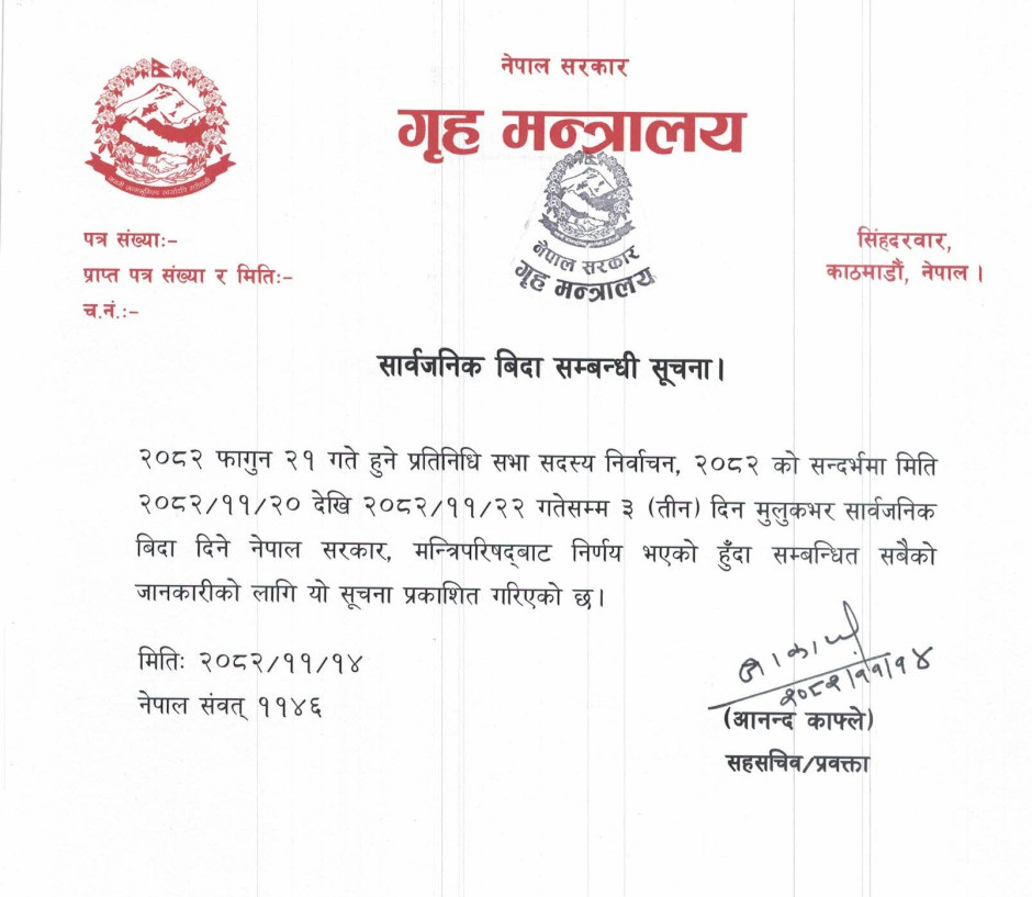 सार्वजनिक बिदा सम्बन्धी सूचना ।