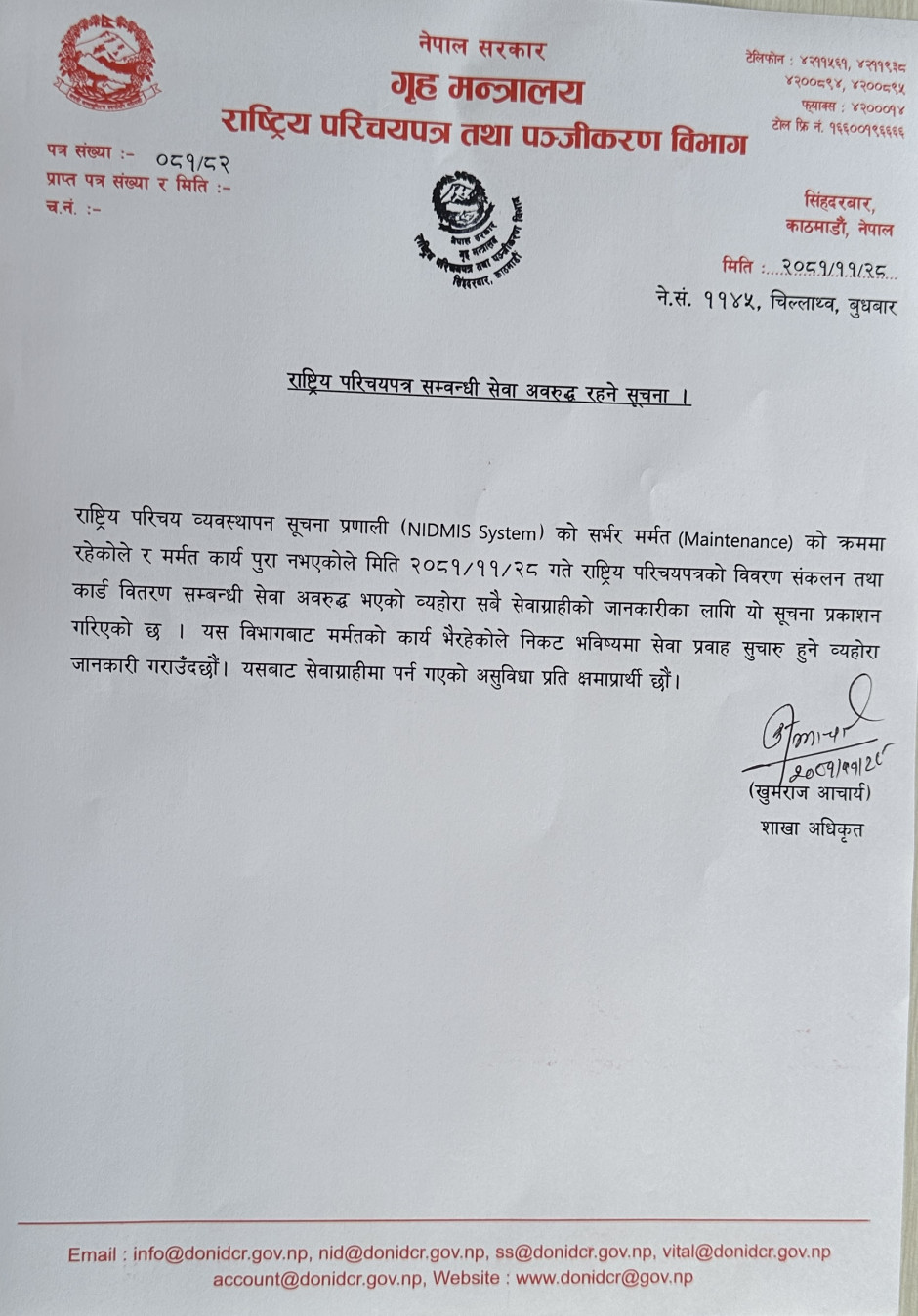 राष्ट्रिय परिचयपत्र सम्वन्धि सूचना तथा जानकारी