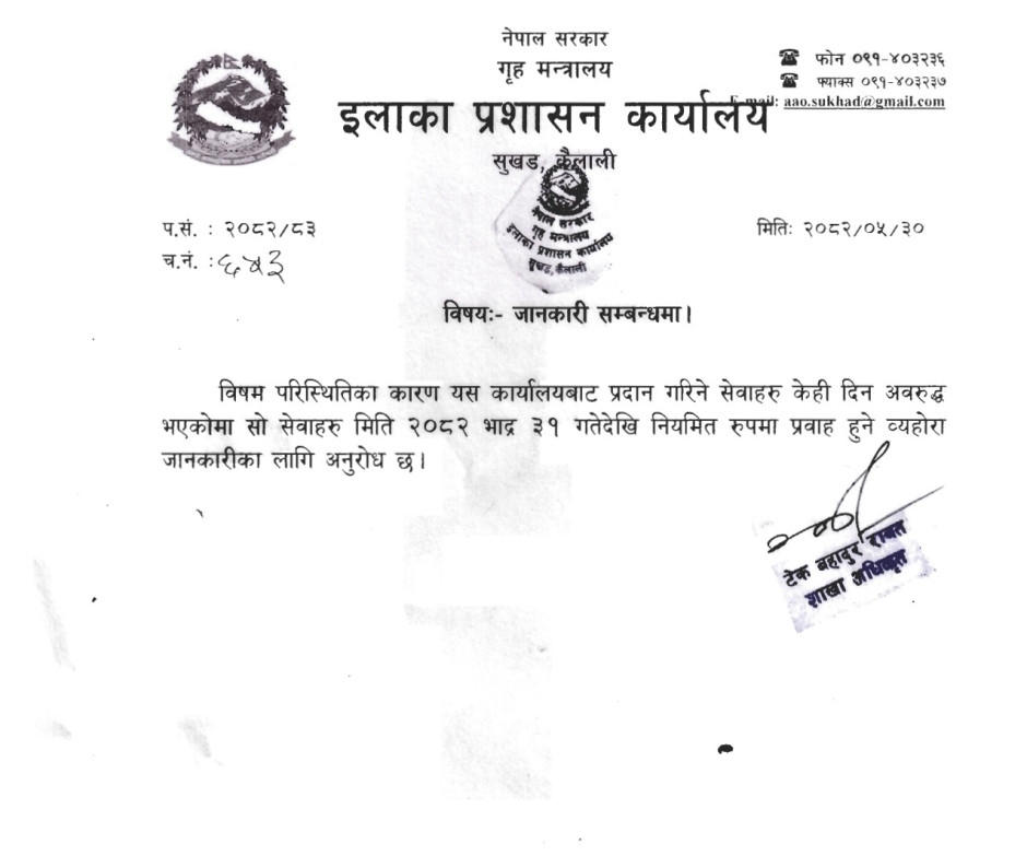 इलाका प्रशासन कार्यालय, सुखड, कैलाली